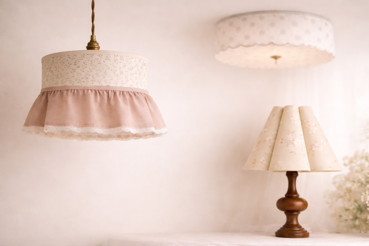 Drugie życie starych lamp. Ręcznie szyte abażury z tkanin vintage.
