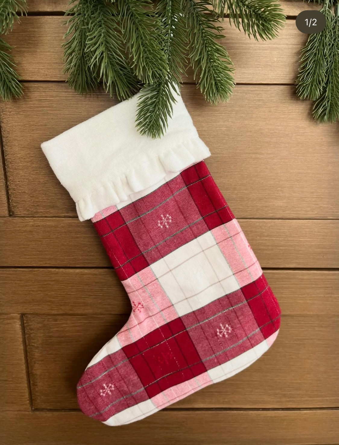 Crimson Hearth – klasyczna skarpeta świąteczna w ciepłej czerwonej kracie